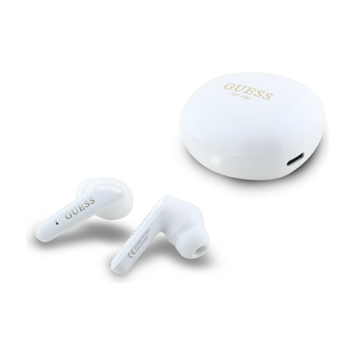 Guess Bežične slušalice Flat Classic Logo Electroplated (GUTWST7FCEEH) Bluetooth 5.4, TWS, Mikrofon, 300mAh bijela