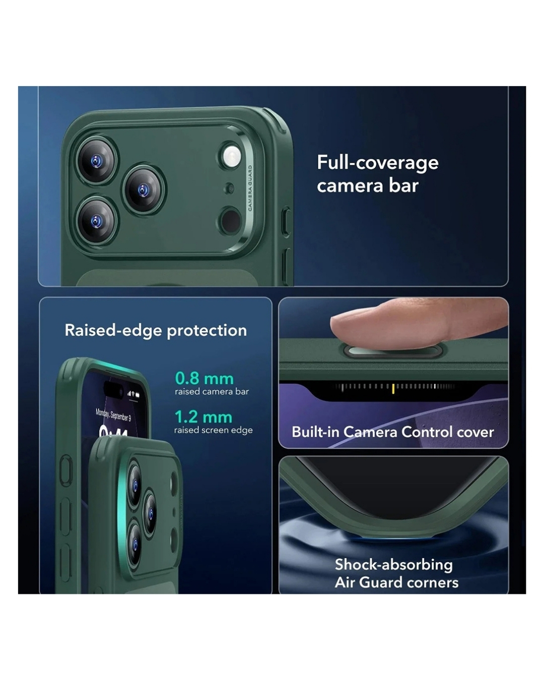 ESR maskica dizajnirana je za pouzdanu svakodnevnu zaštitu zahvaljujući 3-slojnoj konstrukciji i ojačanim kutovima koji učinkovito apsorbiraju udarce. Čvrsta vanjska školjka u kombinaciji s fleksibilnim slojem i unutarnjom oblogom pruža visoku otpornost pri padovima, dok integrirani magneti osiguravaju stabilno i precizno povezivanje s MagSafe dodacima. Izdignuti rubovi maskice dodatno doprinose boljoj zaštiti pri svakodnevnoj upotrebi.