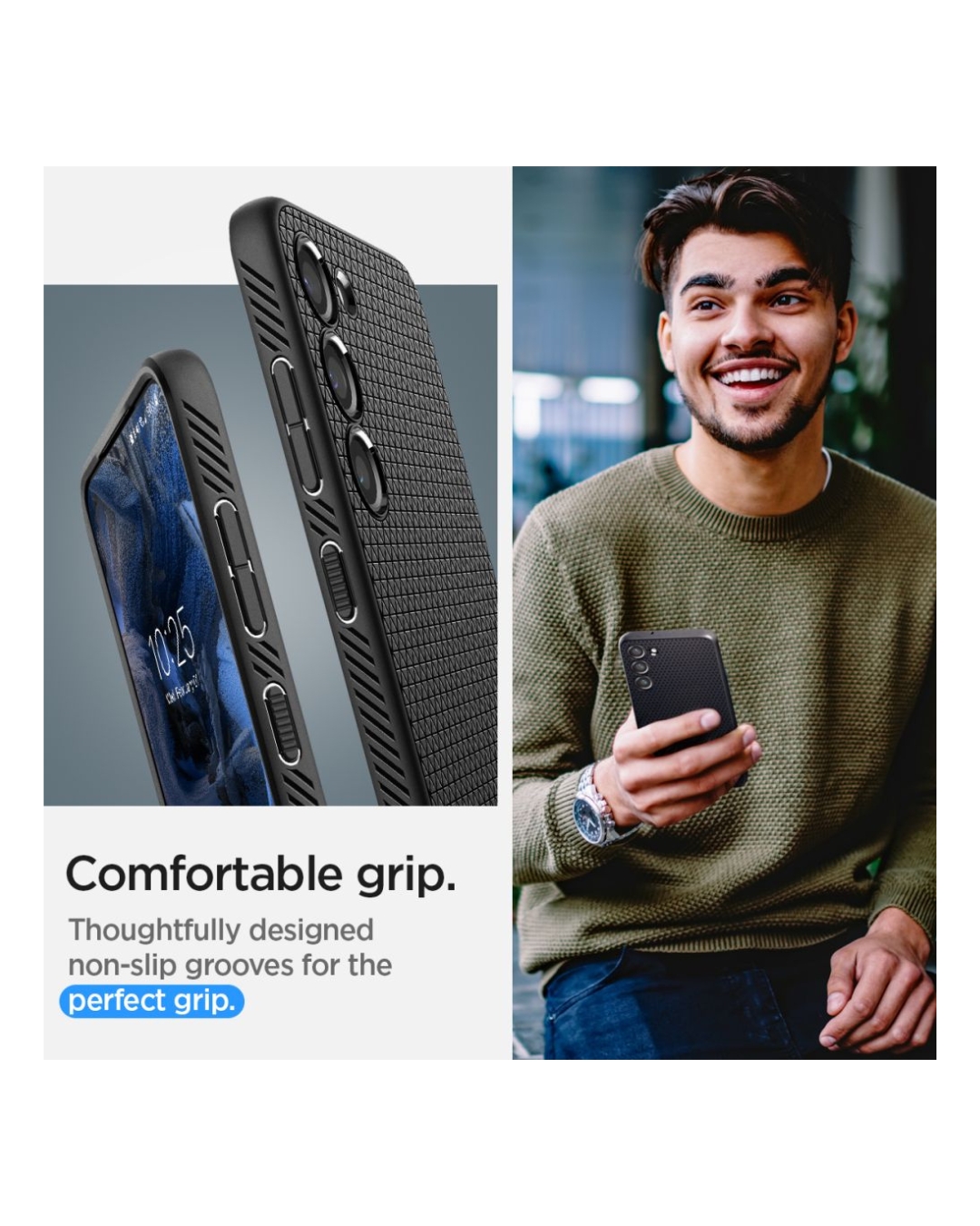 Spigen Liquid Air maskica donosi moderan, tanak dizajn i pouzdanu svakodnevnu zaštitu. Izrađena je od kvalitetnog, fleksibilnog TPU materijala koji osigurava dugotrajnu izdržljivost i sigurno držanje zahvaljujući posebno oblikovanoj teksturi. Prekriveni gumbi štite od prašine i prljavštine, dok izdignuti rubovi maskice doprinose boljoj zaštiti pri svakodnevnoj upotrebi. Precizni izrezi omogućuju jednostavan pristup svim priključcima.