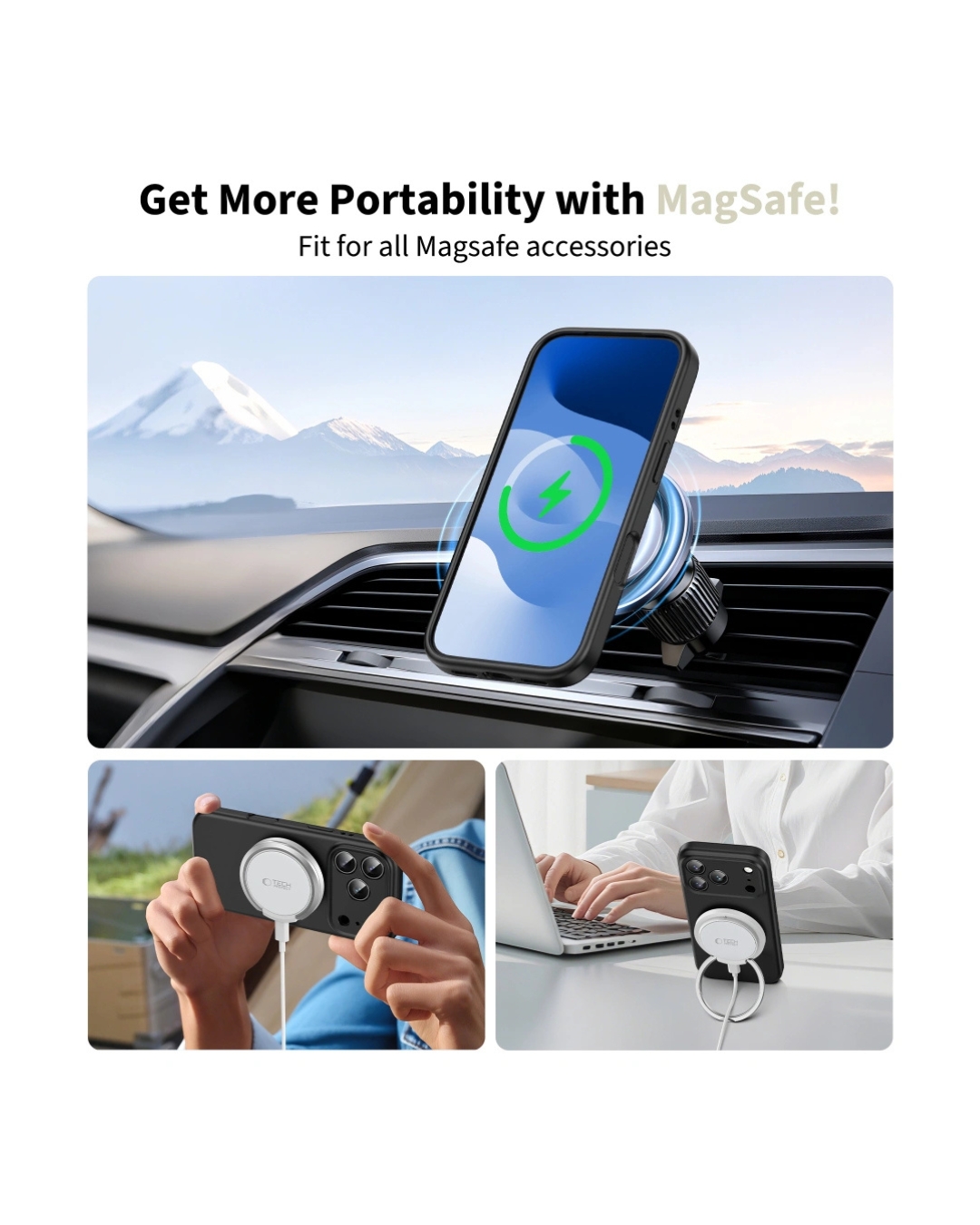 Tech-Protect Silicone MagSafe maskica u crnoj boji nudi svakodnevnu zaštitu uz ugodan silikonski osjećaj i sigurno držanje. Zahvaljujući MagSafe kompatibilnosti, omogućuje jednostavno povezivanje s magnetskim dodacima i bežično punjenje bez skidanja maskice. Izdignuti rubovi maskice doprinose boljoj zaštiti pri svakodnevnoj upotrebi, a tanak profil zadržava elegantan izgled uređaja.